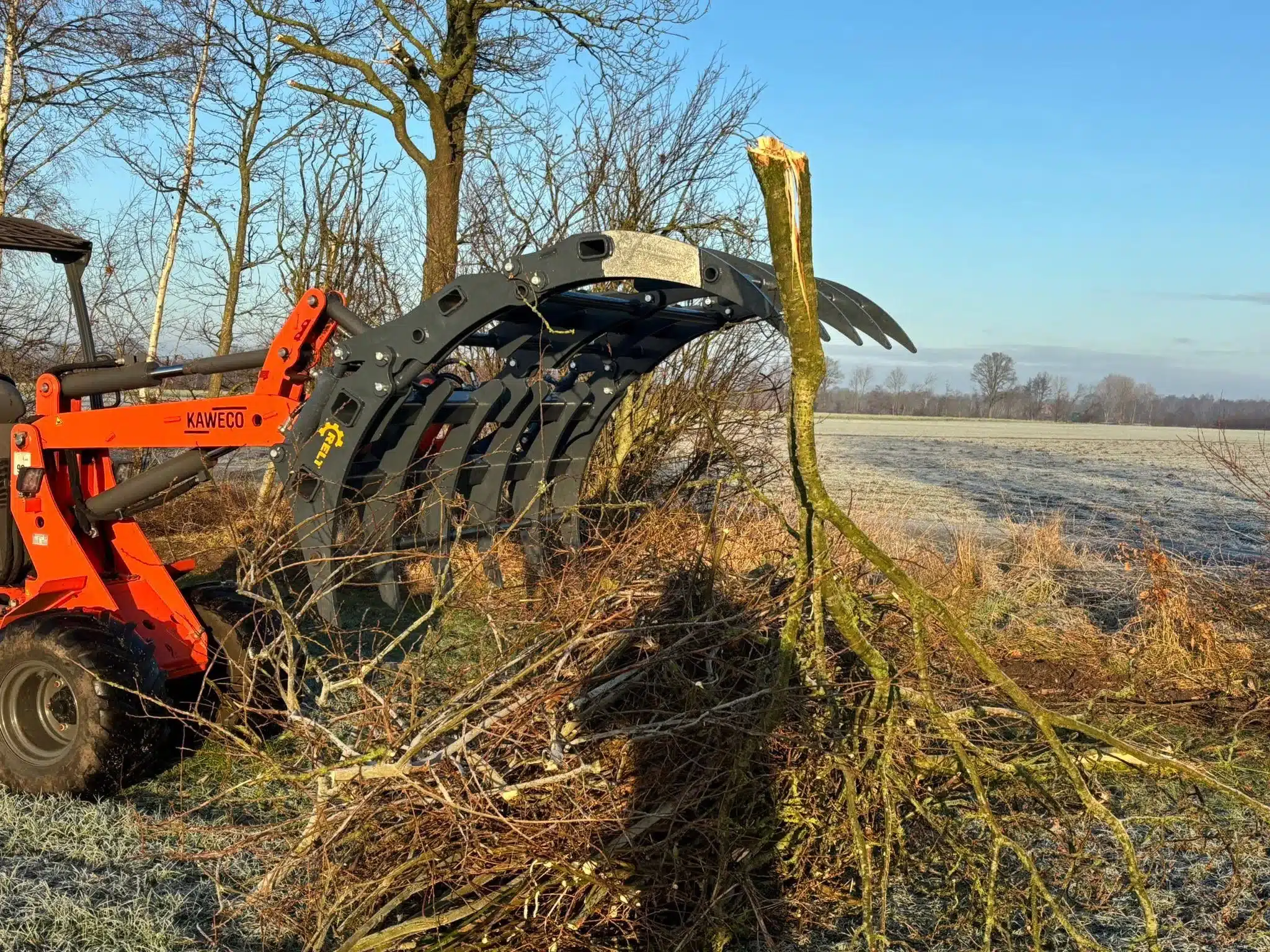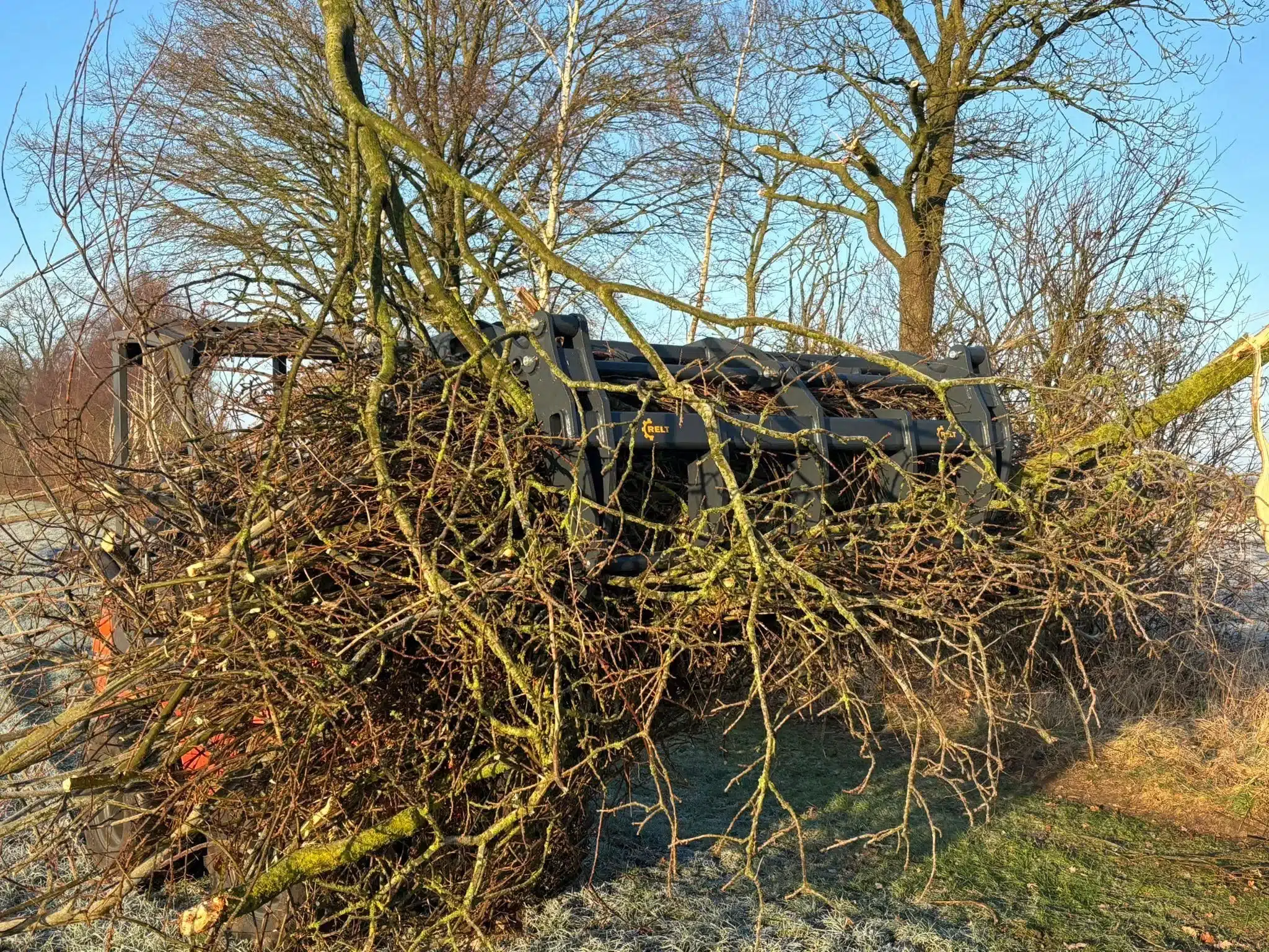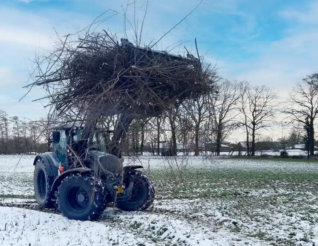 Die Doppelkardanik presst das Reisig kraftvoll zusammen, wodurch das Material sicher gebündelt und stabil gehalten wird. Das minimiert Verluste, reduziert Nacharbeit und gewährleistet einen kontrollierten, strukturierten Arbeitsablauf.